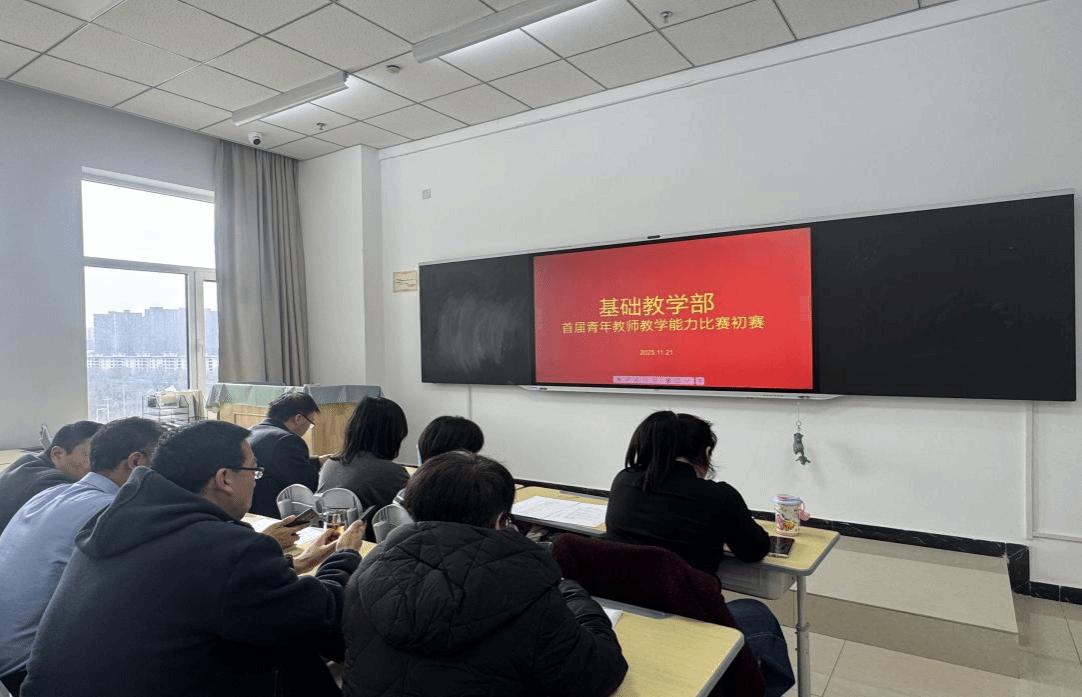 为锤炼青年教师教学基本功,搭建教学经验交流与专业成长平台,夯实基础教学质量根基,同时紧扣课程思政育人要求,积极响应学校相关比赛号召,基础教学部于 2025 年 11 月 21 日下午及 11 月 24 日下午,在南教 509 教室成功举办首届青年教师教学能力比赛初赛。本次比赛共有 14 名 35 岁以下的青年教师踊跃参与,参赛课程涵盖大学语文、高等数学、大学英语、无机及分析化学等多个基础学科,充分展现了基础教学部青年教师队伍的活力与育人担当。